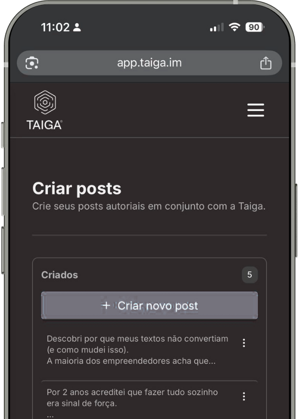 A Taiga é para quem precisa crescer no LinkedIn com consistência, sem delegar sua voz para terceiros. Criar conteúdo, construir a autoridade e gerar negócios no LinkedIn está mais fácil com a Taiga!