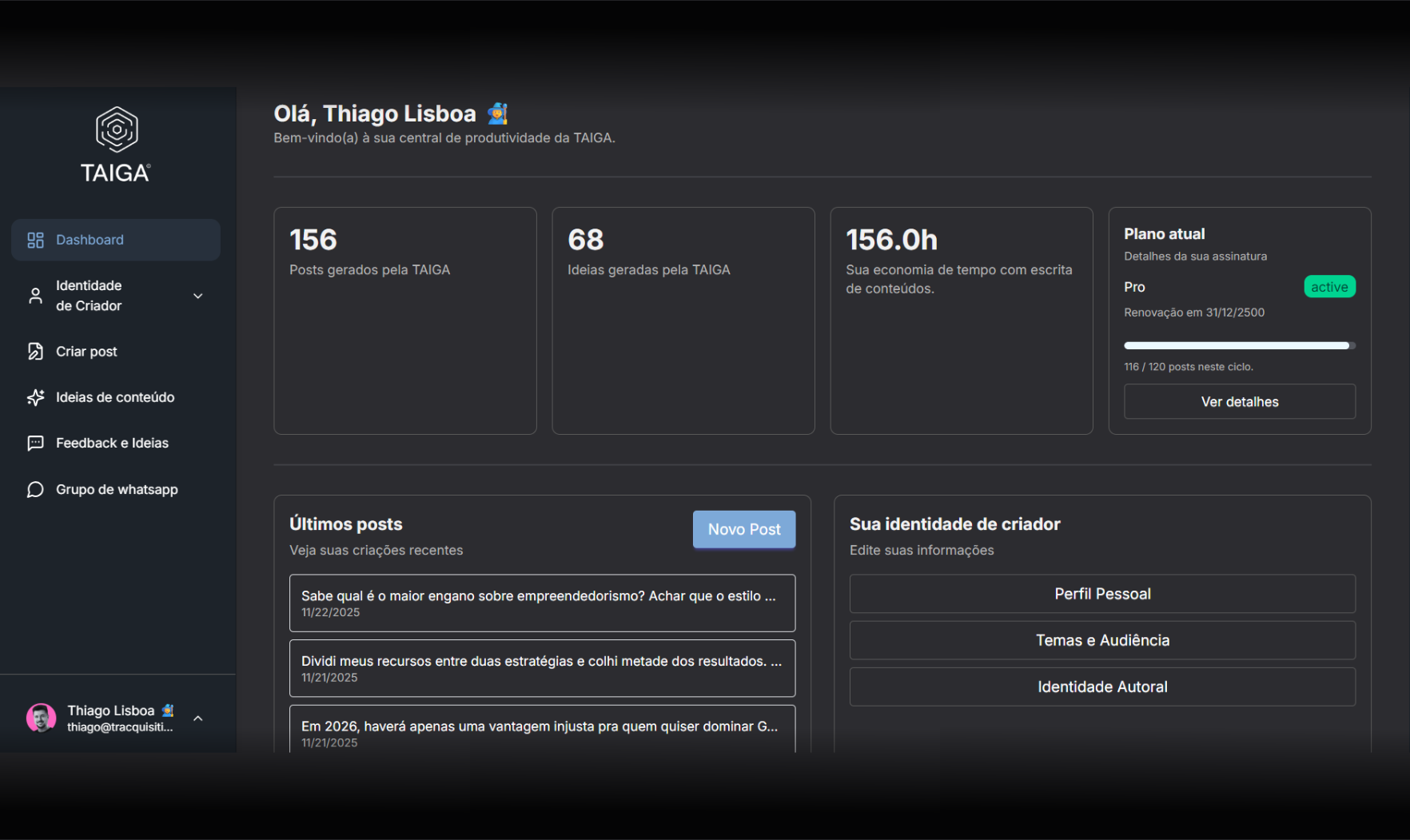 “Antes da Taiga, publicar era um sofrimento. Hoje, minha presença no LinkedIn virou ativo previsível."